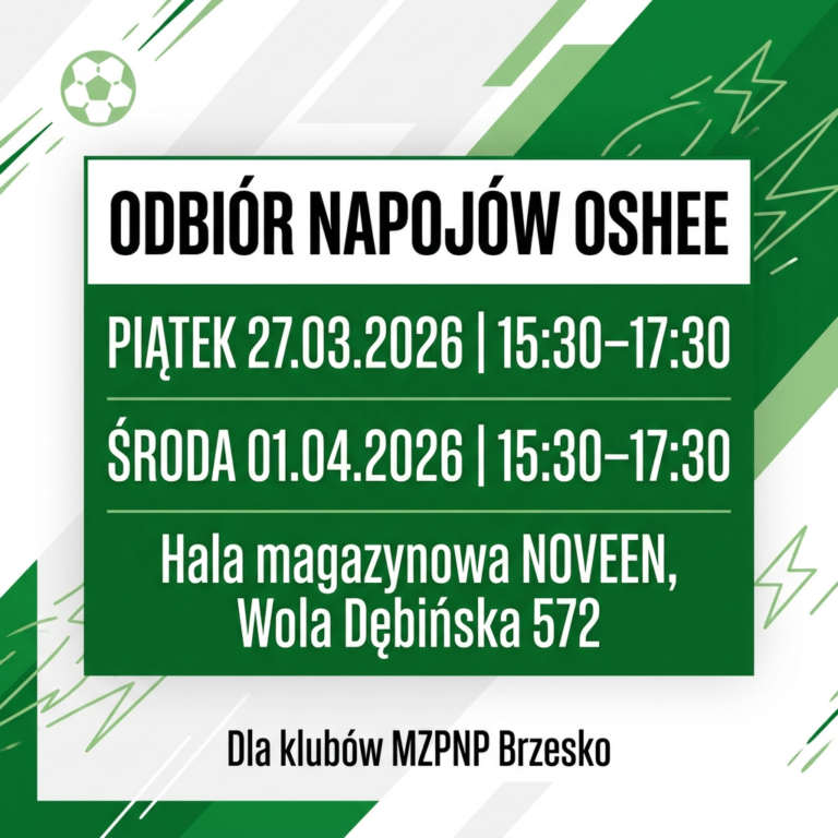 Zarząd MZPNP Brzesko informuje Kluby, że dzięki staraniom wiceprezes MZPNP Brzesko Elżbiety Rysak, a także Ines Oleksy, Jarka Cieślika oraz Fundacji Galon, otrzymaliśmy kolejny transport napojów regeneracyjnych firmy OSHEE przeznaczonych dla drużyn przynależnych do MZPNP Brzesko. Napoje wydawane będą w piątek 27 marca 2026 roku…